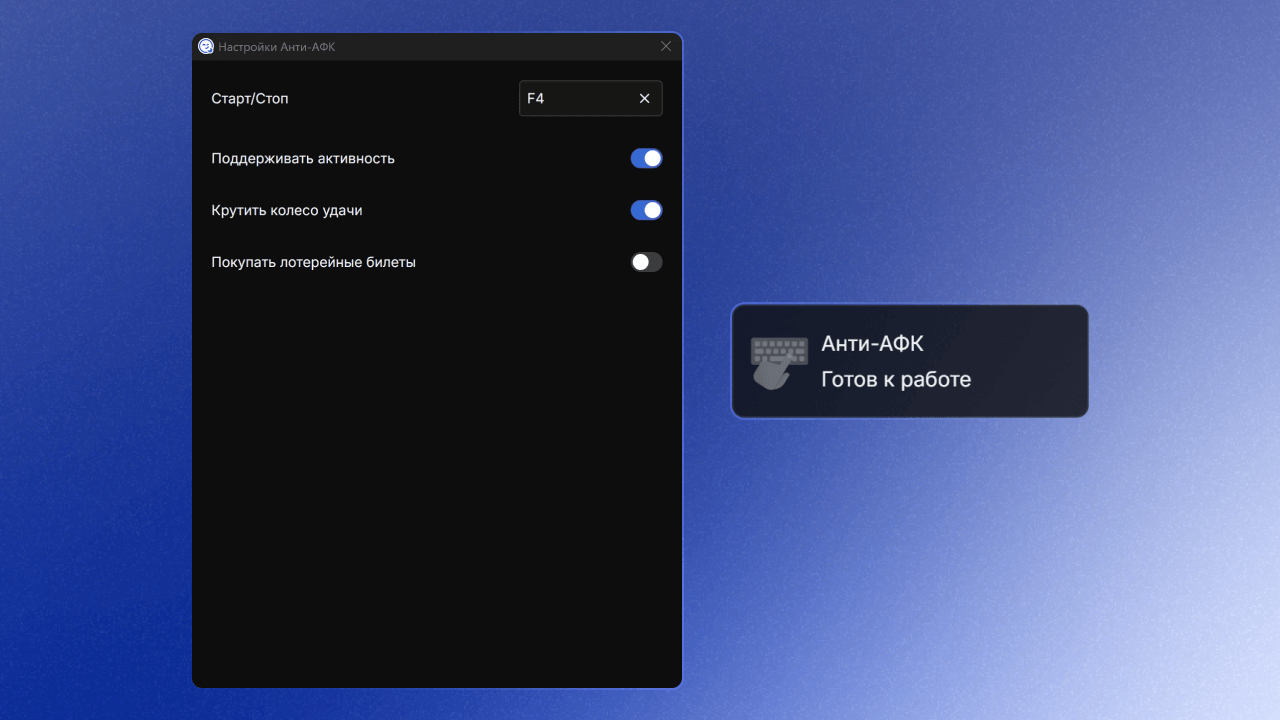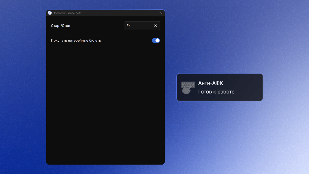 Бот Анти-AFK помогает автоматизировать фоновые игровые активности. Он может отслеживать доступность колеса удачи и прокручивать его, забирая награду, а также периодически покупать лотерейные билеты. Это удобно, когда игра запущена в фоне, нужно отойти или просто не хочется каждые несколько часов возвращаться к одним и тем же действиям.