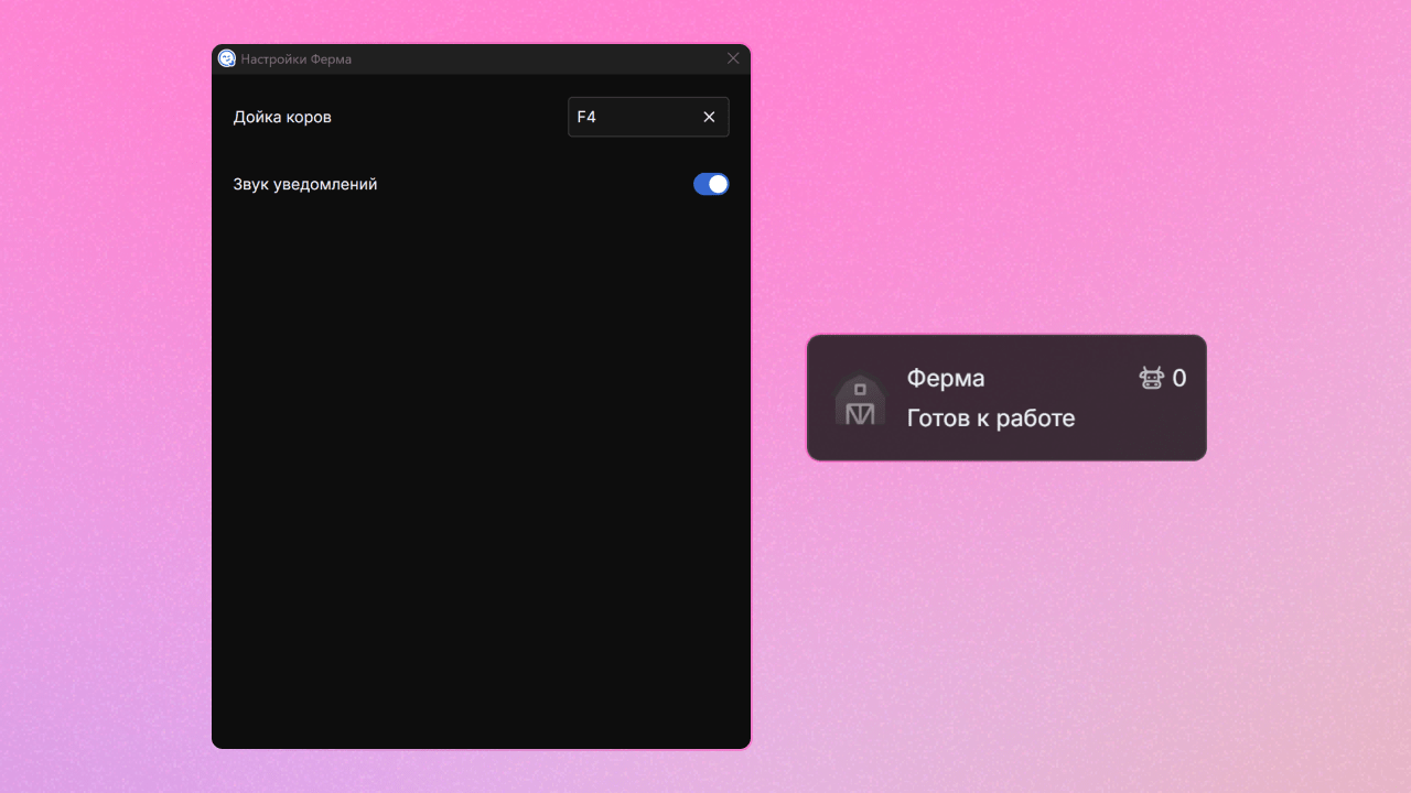 Наш бот для фермы упрощает процесс дойки коров. Он автоматически проходит мини-игру, а вам остается только подходить к коровам и относить молоко. Бот оповещает о завершении мини-игры, поэтому во время процесса можно ненадолго отвлечься. Также доступен счетчик выполненных действий, чтобы было проще отслеживать прогресс.