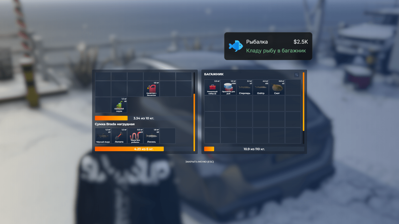 Перенос рыбы в сумку и багажник