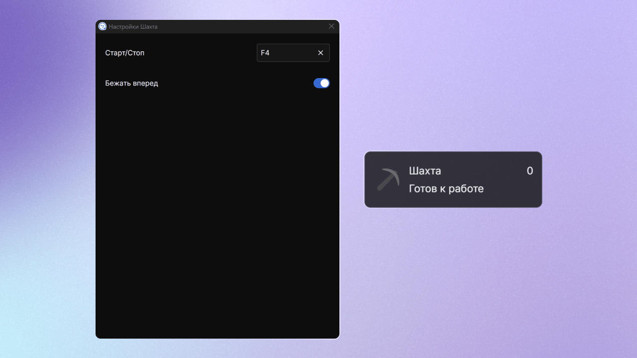 Наш бот для шахты снимает большую часть рутины. Он решает мини-игру и зажимает бег вперед, освобождая от однотипных действий. Остается лишь направлять персонажа. Бот также считает количество выполненных действий, чтобы было проще отслеживать прогресс.